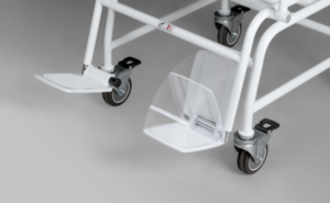 - Two foldable armrests and footrests make transfers into the chair easier. Ideal for overweight patients or barrier-free use, e.g. for transfers from a bed to the scale